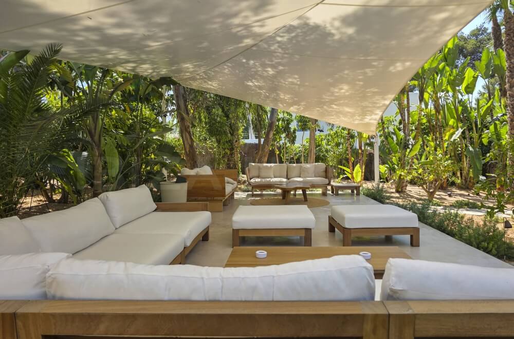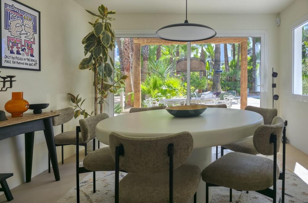 Here, you can enjoy complete privacy, with a wonderful large pool and a fantastic chill-out area featuring many lounge and sunbeds, as well as plenty of space! The large garden, beautifully landscaped with Mediterranean plants and trees, is perfect for relaxation and rejuvenation. There is even a dedicated yoga space.