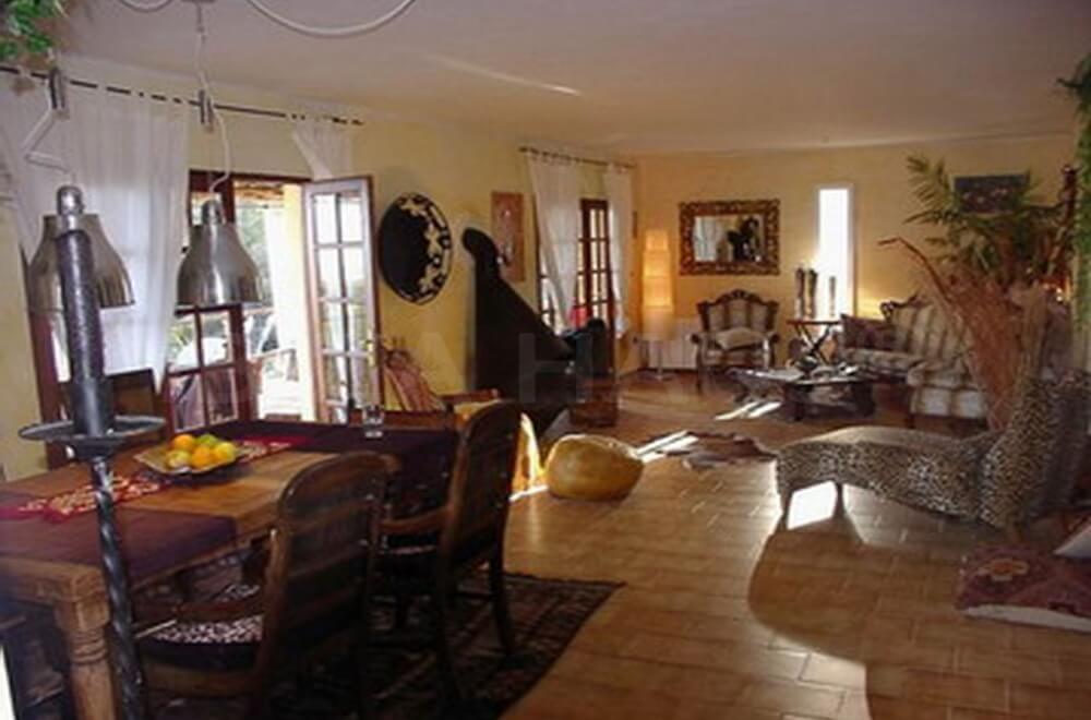 The Mediterranean-style holiday home Can Bros is beautifully and peacefully located between Ibiza Town and Santa Eulalia, near the golf course at Cala Llonga. Here, you can enjoy tranquility and fully unwind on the 2000m² property with stunning views of the landscape and the sea.