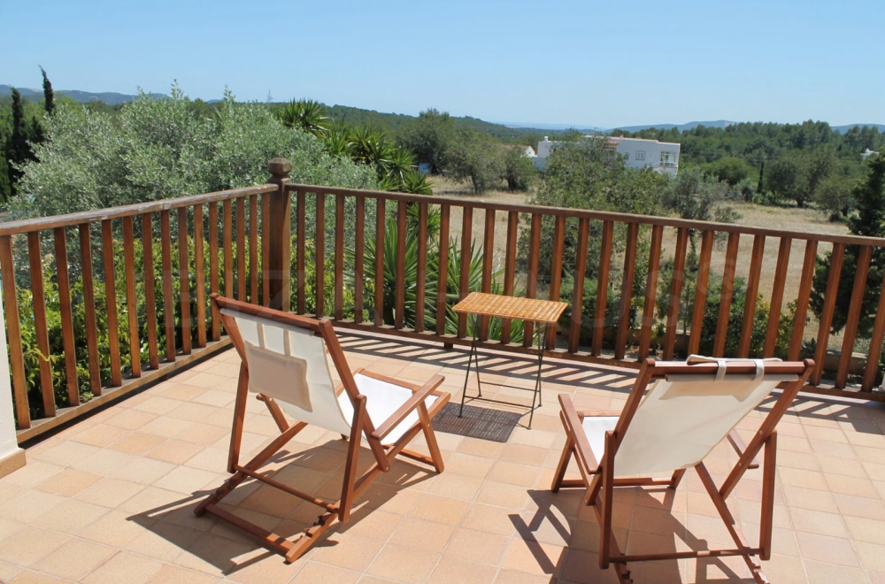 Uno de sus grandes atractivos es la terraza superior, desde donde se disfruta de unas preciosas vistas abiertas hacia Ibiza ciudad e incluso hasta Formentera - el lugar perfecto para disfrutar de mágicas tardes de verano con el auténtico encanto de Ibiza.