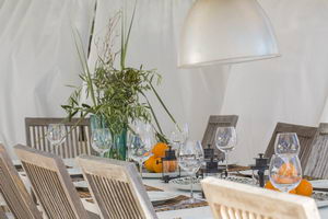 Das Haus bietet einen großzügigen Wohn- und Essbereich für 14 Personen, 6 Doppelzimmer mit 5 Badezimmern, wobei 4 von ihnen über einen eigenen Eingang und eine Terrasse verfügen.