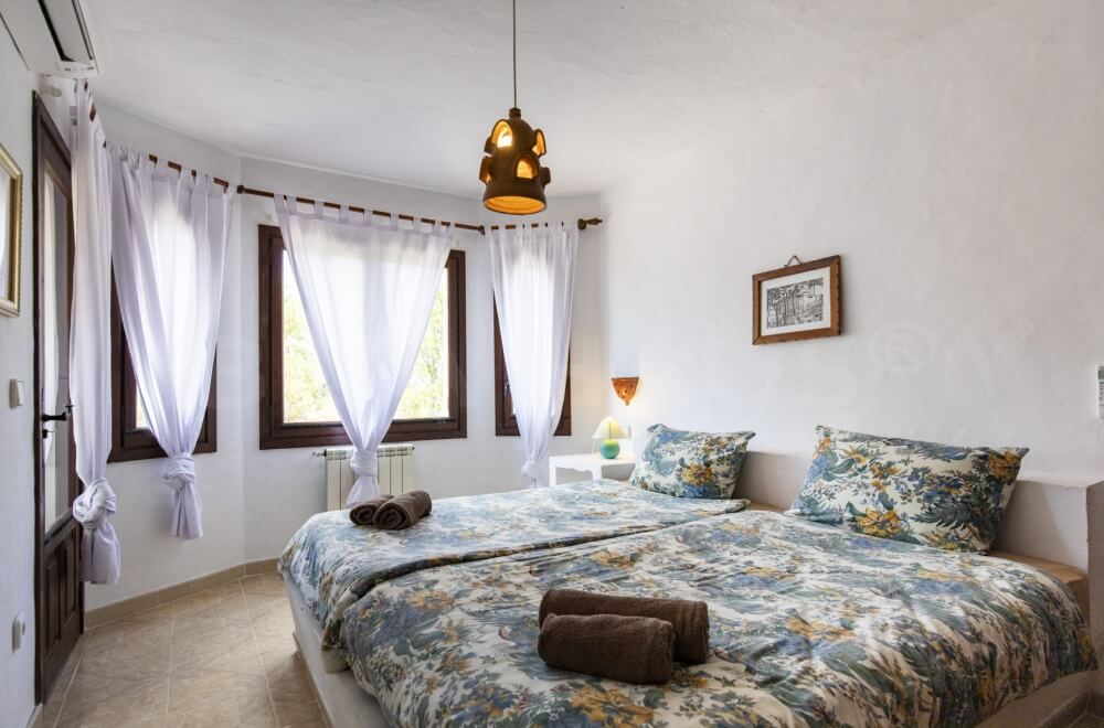 Ein weiteres Schlafzimmer mit 2 Einzelbetten befindet sich in der unteren Etage. Auch hier genießt man aus allen Zimmern den Meerblick.