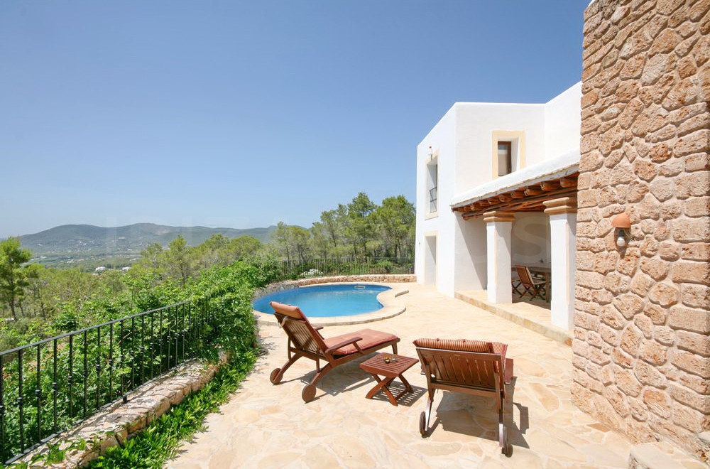 Im traumhaften Osten der Insel, mit wunderschönem Rundumblick über das ländliche Ibiza und auf die Morna-Gebirgskette liegt das nach alten Finca-Plänen gebaute Ferienhaus.