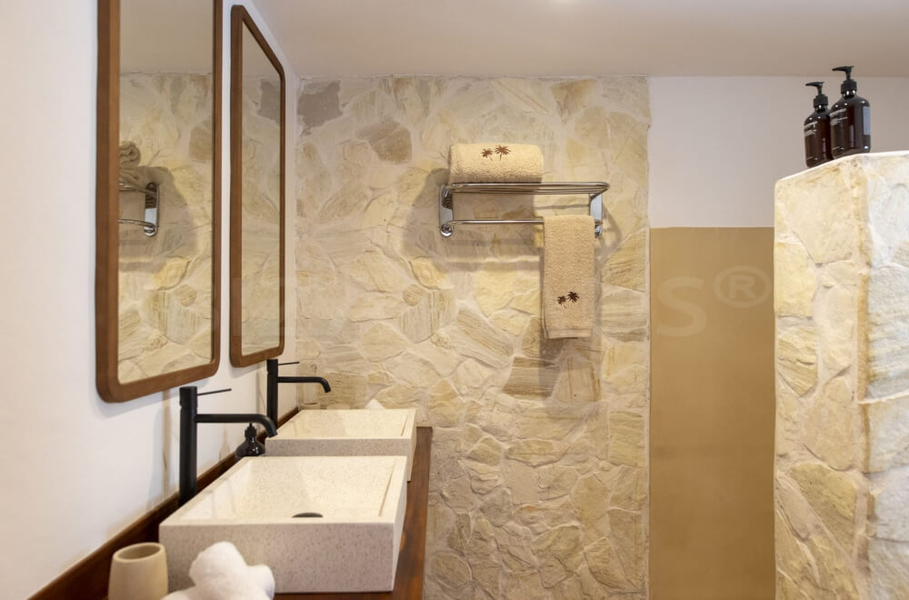 Die Finca verfügt über 3 Doppelzimmer, wobei die Betten flexibel auch als Einzelbetten vorbereitet werden können - ideal für unterschiedliche Belegungswünsche. Insgesamt stehen 2 Badezimmer zur Verfügung: eines mit Dusche/WC, das andere ebenfalls mit Dusche/WC.